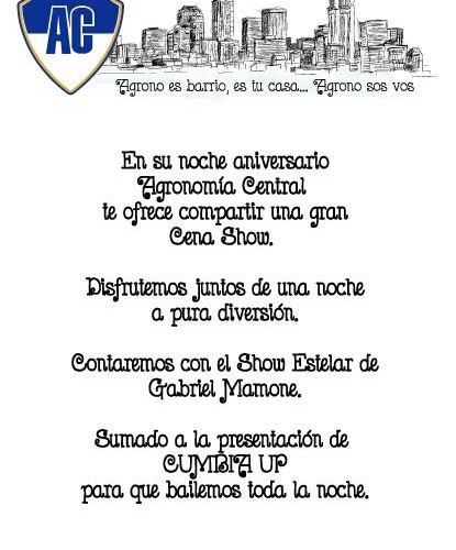 Hoy Fiesta Aniversario!!17 dic 20161 Min. de lecturaHoy Fiesta Aniversario Club Agronomía Central - 21:30hs Te esperamos! 234